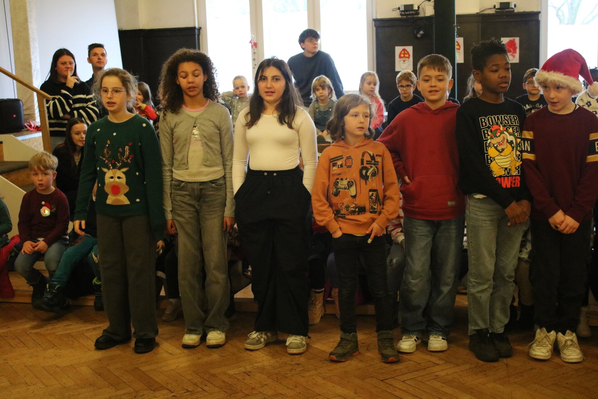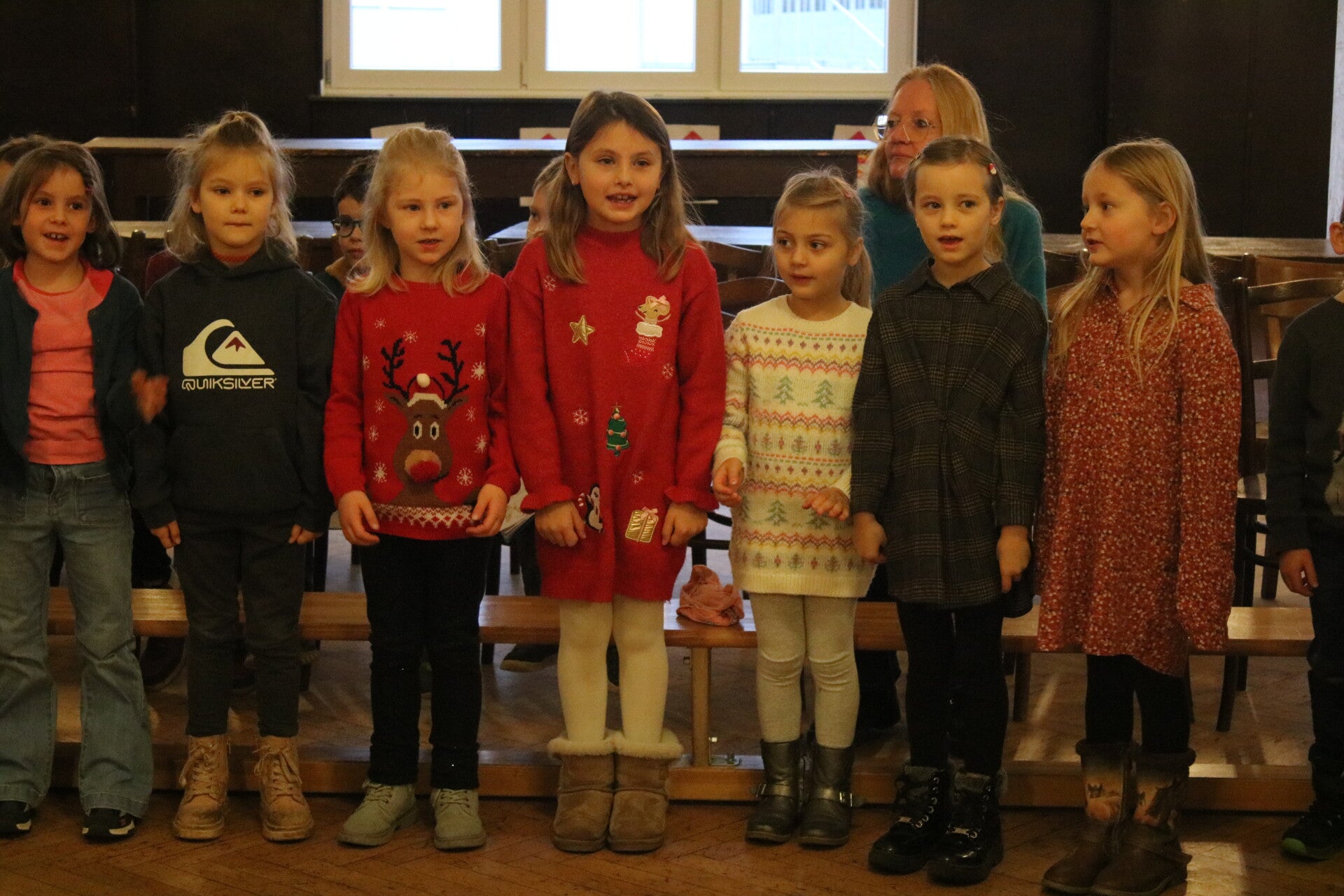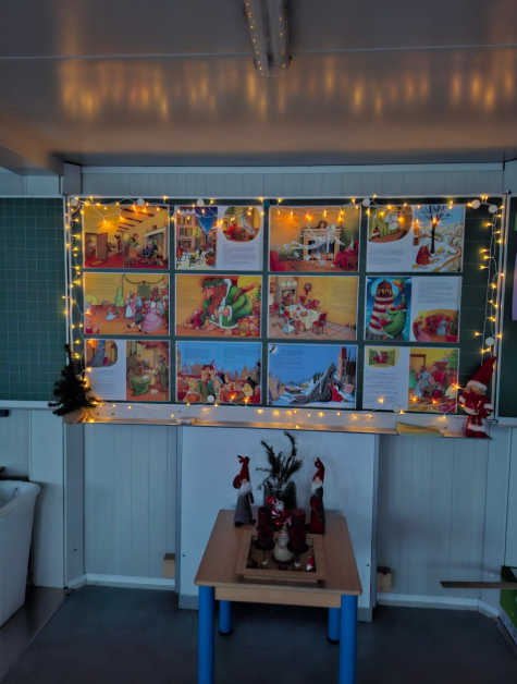 Im Rahmen unseres Jahresthemas „Vorlesen macht stark“ fand in der Adventszeit ein stimmungsvolles Adventslesen statt. Die Kinder durften zwischen verschiedenen Weihnachtsgeschichten auswählen, die ihnen anschließend vorgelesen wurden. In gemütlicher Atmosphäre konnten sie zuhören, eintauchen und die Freude am Vorlesen erleben. Parallel dazu organisierte unsere Oberstufe einen Verkauf zugunsten der Schneeklasse. Sie verkauften Getränke, frisch gebackene Waffeln, selbstgezeichnete Weihnachtskarten und selbstgemachte Weihnachtskerzen. Mit ein wenig Unterstützung durch die Eltern meisterten die Kinder den Verkauf größtenteils selbst – mit großem Engagement und sichtbarem Stolz. Am Ende des Tages war beinahe alles ausverkauft.