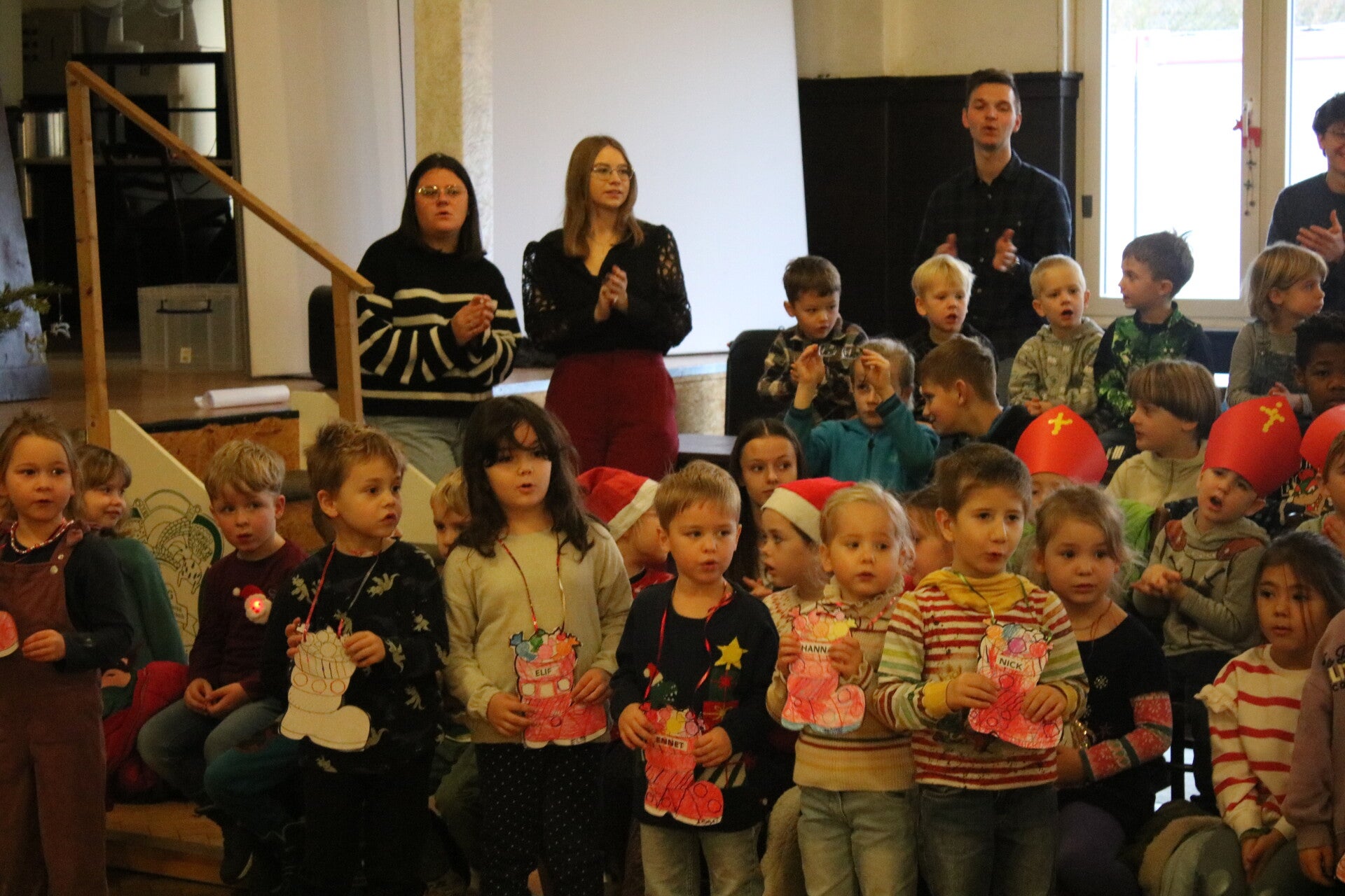 Im Rahmen unseres Jahresthemas „Vorlesen macht stark“ fand in der Adventszeit ein stimmungsvolles Adventslesen statt. Die Kinder durften zwischen verschiedenen Weihnachtsgeschichten auswählen, die ihnen anschließend vorgelesen wurden. In gemütlicher Atmosphäre konnten sie zuhören, eintauchen und die Freude am Vorlesen erleben. Parallel dazu organisierte unsere Oberstufe einen Verkauf zugunsten der Schneeklasse. Sie verkauften Getränke, frisch gebackene Waffeln, selbstgezeichnete Weihnachtskarten und selbstgemachte Weihnachtskerzen. Mit ein wenig Unterstützung durch die Eltern meisterten die Kinder den Verkauf größtenteils selbst – mit großem Engagement und sichtbarem Stolz. Am Ende des Tages war beinahe alles ausverkauft.