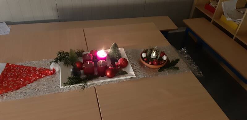 Wir Kinder lieben diese Zeit vor Weihnachten so sehr, denn Frau Hamacher liest morgens, in gemütlicher Atmosphäre und bei Kerzenschein, die Geschichte von König Winter vor. Natürlich wird auch gewichtelt und das Türchen des Adventskalenders geöffnet. Nachmittags, kurz vor Schulschluss, liest Frau Hamacher noch eine sehr ungewöhnliche und besonders lustige Adventsgeschichte von Bisy, der Stubenfliege und Karl-Heinz, der faulen Spinne, vor.