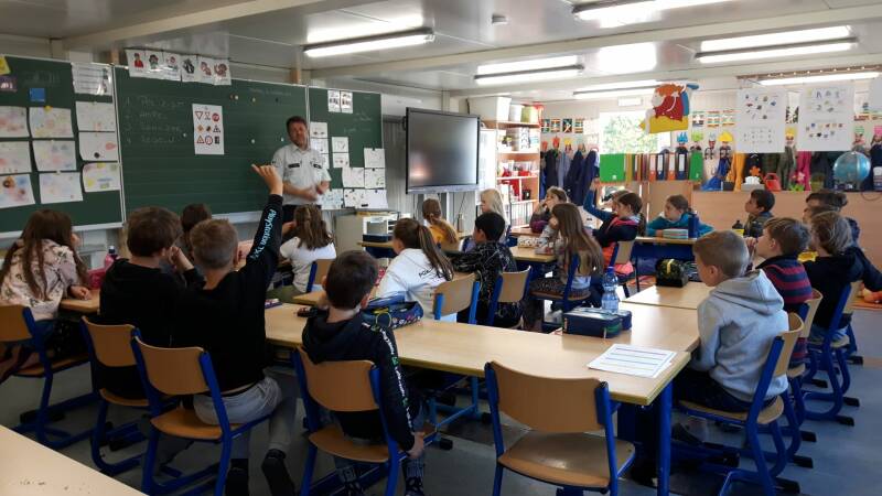 Herr Klein, der Polizist, hat uns gezeigt ,wie wir auf dem Fahrrad sicher fahren müssen. Das geschah auf dem Schulhof. Danach sind wir alle hintereinander auf der Straße Rad gefahren . Herr Klein fuhr vorne weg und wir hinter im her . Bei jeder Kreuzung wartete Herr klein auf uns und erklärte uns, wie eine Kreuzung funktioniert. Die nächsten Male sind wir einzeln gefahren.