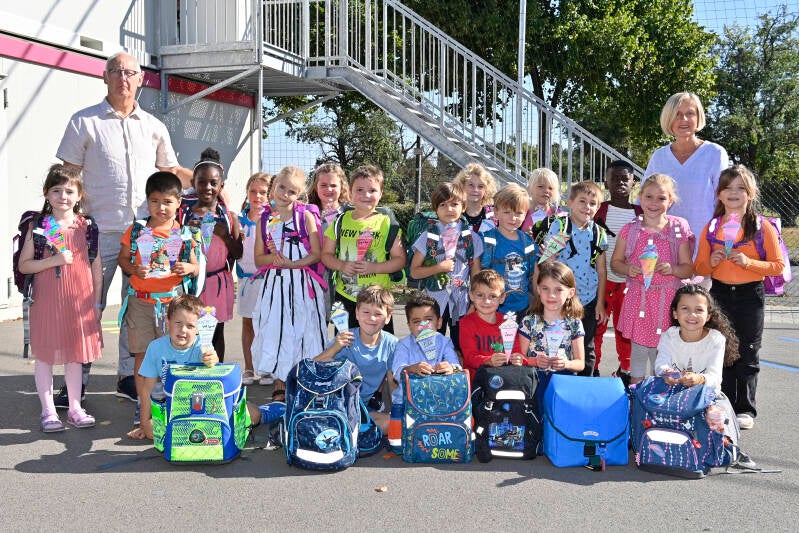 Nach der Schule haben wir auf dem Schulhof unser gelerntes Lied gesungen und von unseren Eltern die Schultüte erhalten.