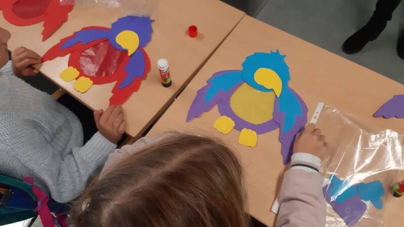 Die bunten Vögel sind los... bald sind unsere wunderschönen Laternen fertig! ❤💙💜💛🦜