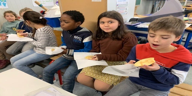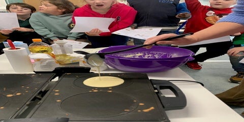 Wir machten Pfannekuchen, lernten die Zutaten auf Französisch kennen und formulierten das Rezept in kleinen Sätzen. "Je mets" und "je prends" waren oft die Satzanfänge.