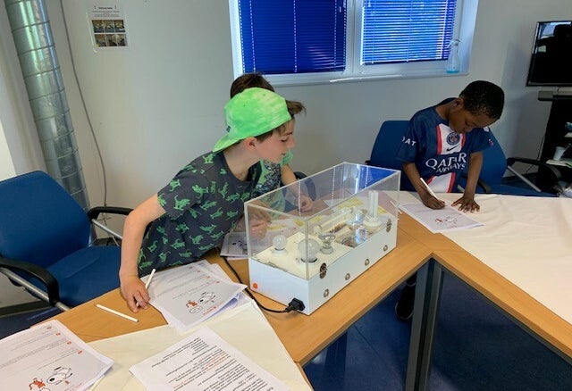 Wir stellten verschiedene Stromkreise her und untersuchten wie Strom geleitet wird oder ein Stromkreis unterbrochen werden kann.