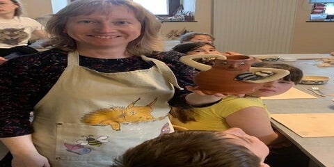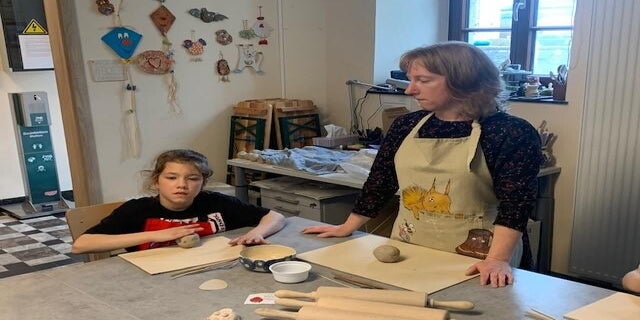 Nach einer schönen Mittagspause konnten wir uns selbst auf die Spuren des alten Handwerks begeben und töpfern. Ausgestattet mit Ton und Werkzeugen verwirklichten wir mit Hilfe von Alex unsere eigenen Ideen, Erdbeeren, kleine Mäuse, Frösche, Hasen.... der Kreativität war keine Grenze gesetzt.
