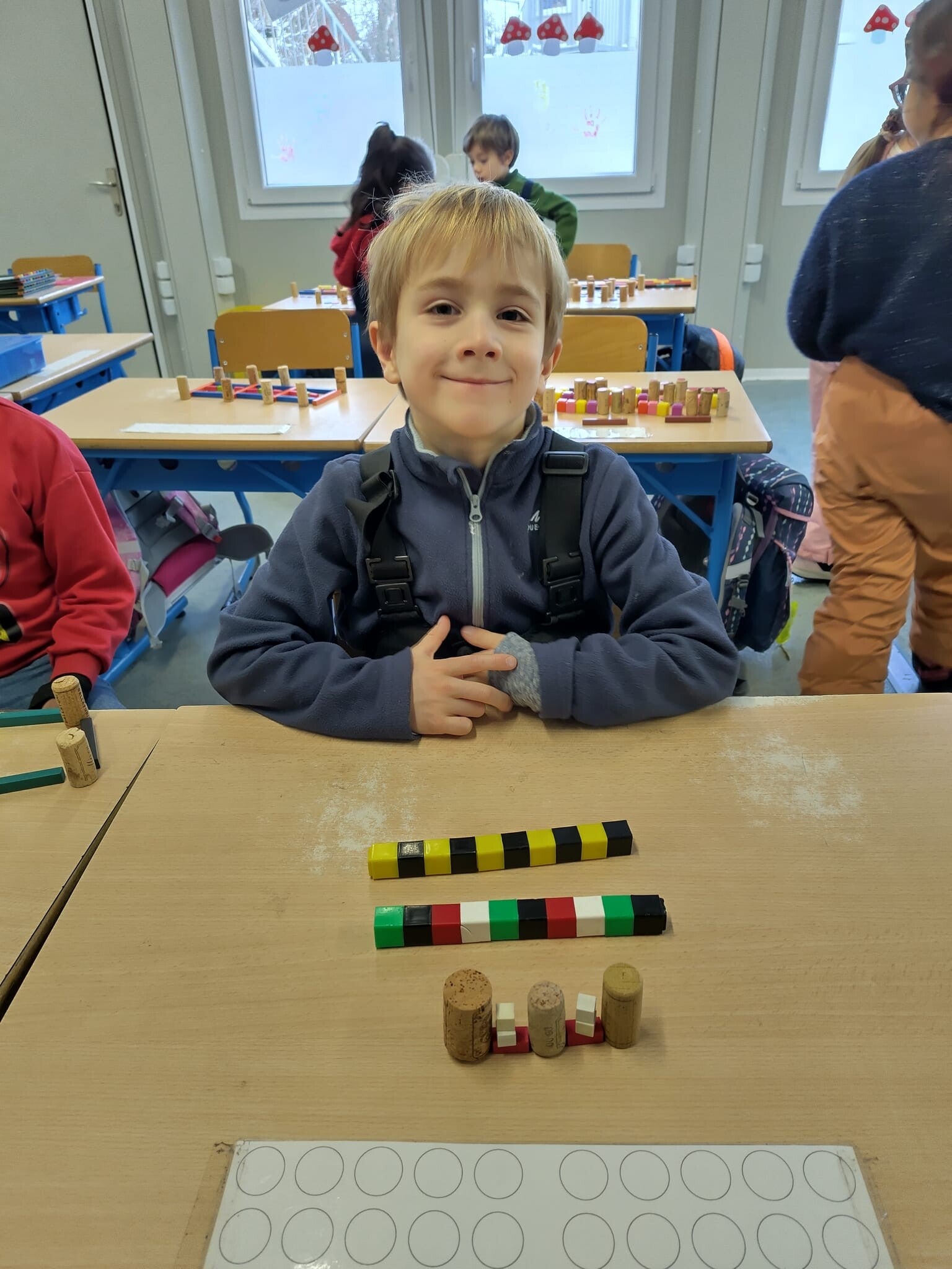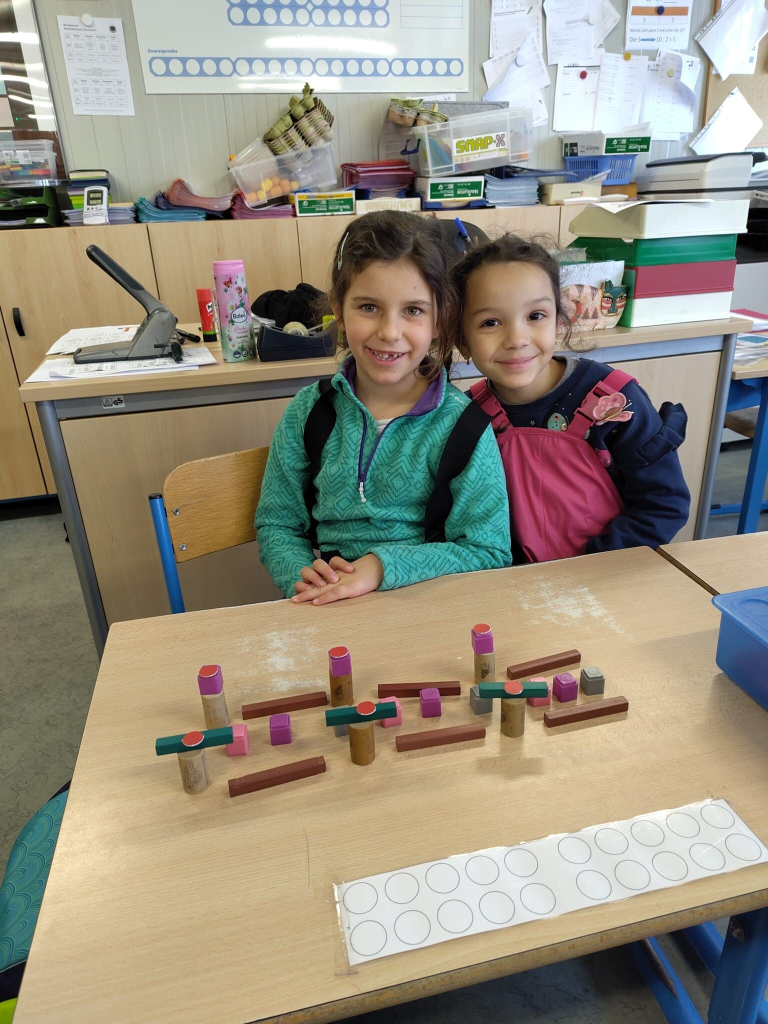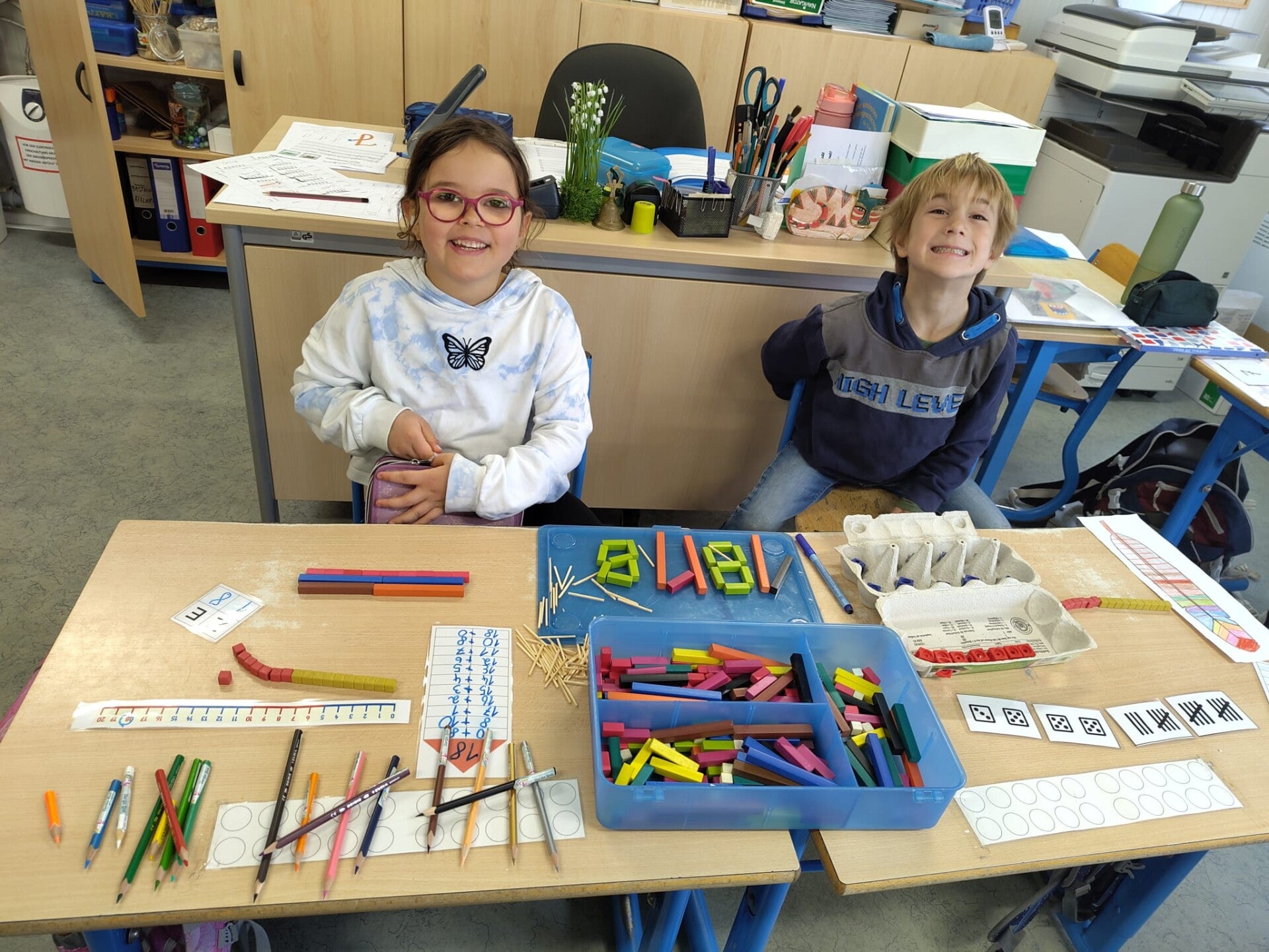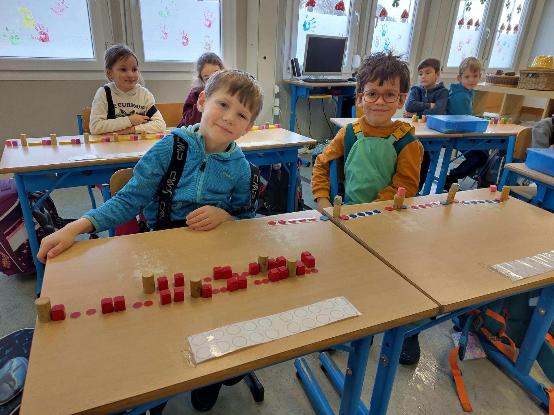 Wir haben schon ganz viele Darstellungen von Zahlen kennengelernt, sodass es nun für eine kleine Ausstellung reicht. Die Kinder bekamen lediglich das Material zur Verfügung und haben in Partnerarbeit ihre kleine Ausstellung vorbereitet. Am Ende haben wir gegenseitig unsere Werke bewundert.