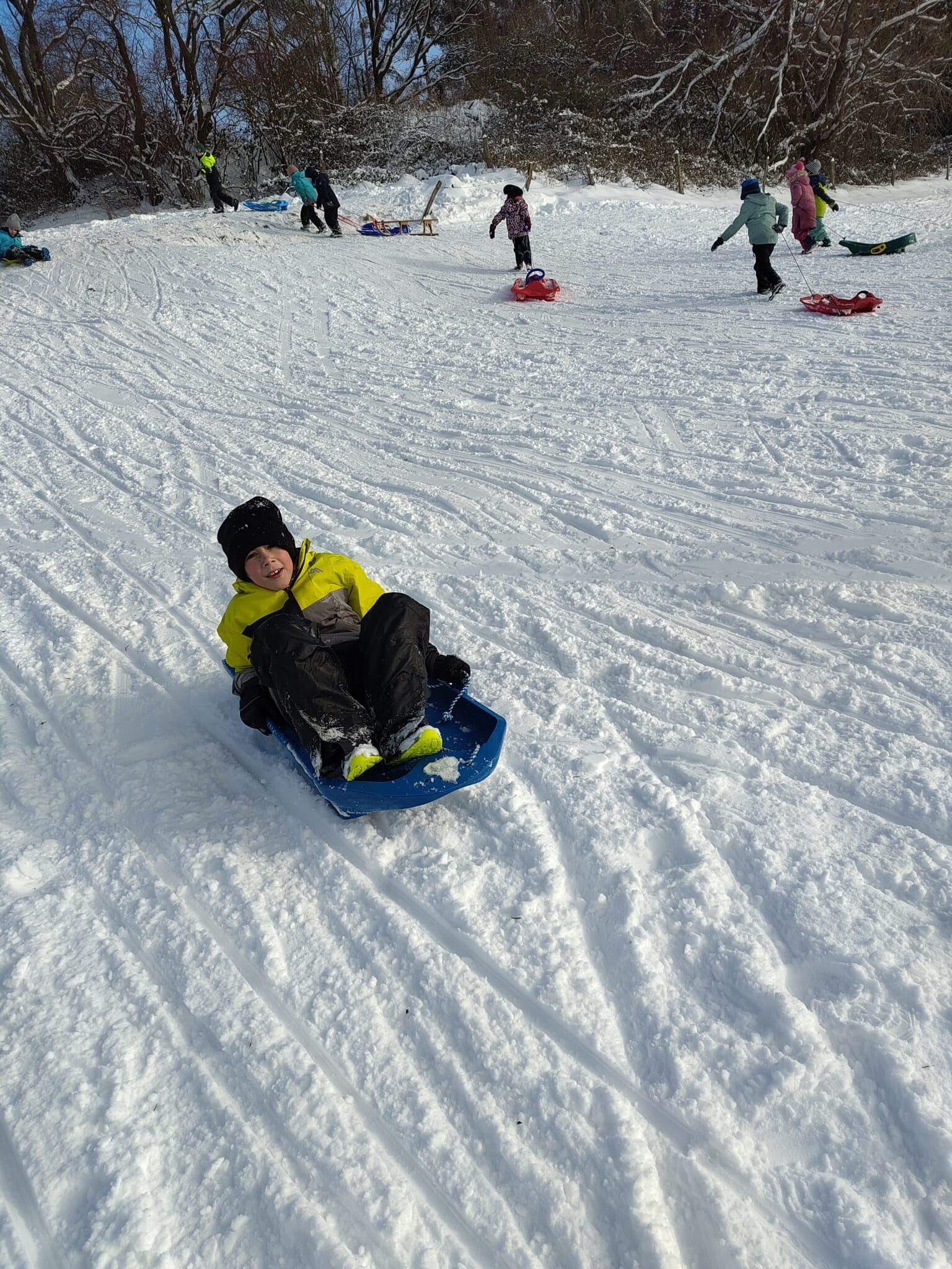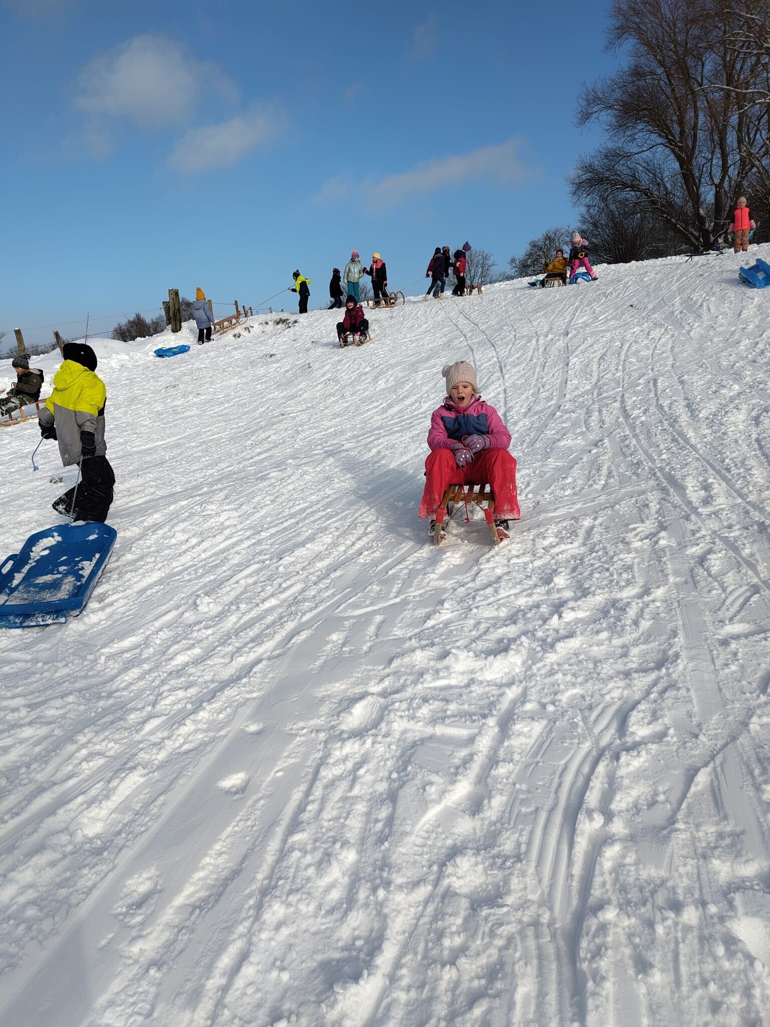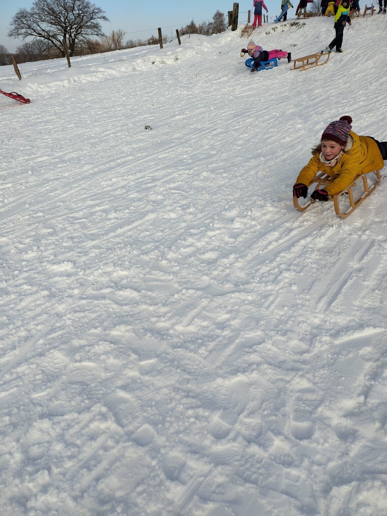 Am Freitagnachmittag haben wir den tollen Schnee genutzt und waren gemeinsam mit der 2. Klasse rodeln. Es hat uns allen großen Spaß gemacht!