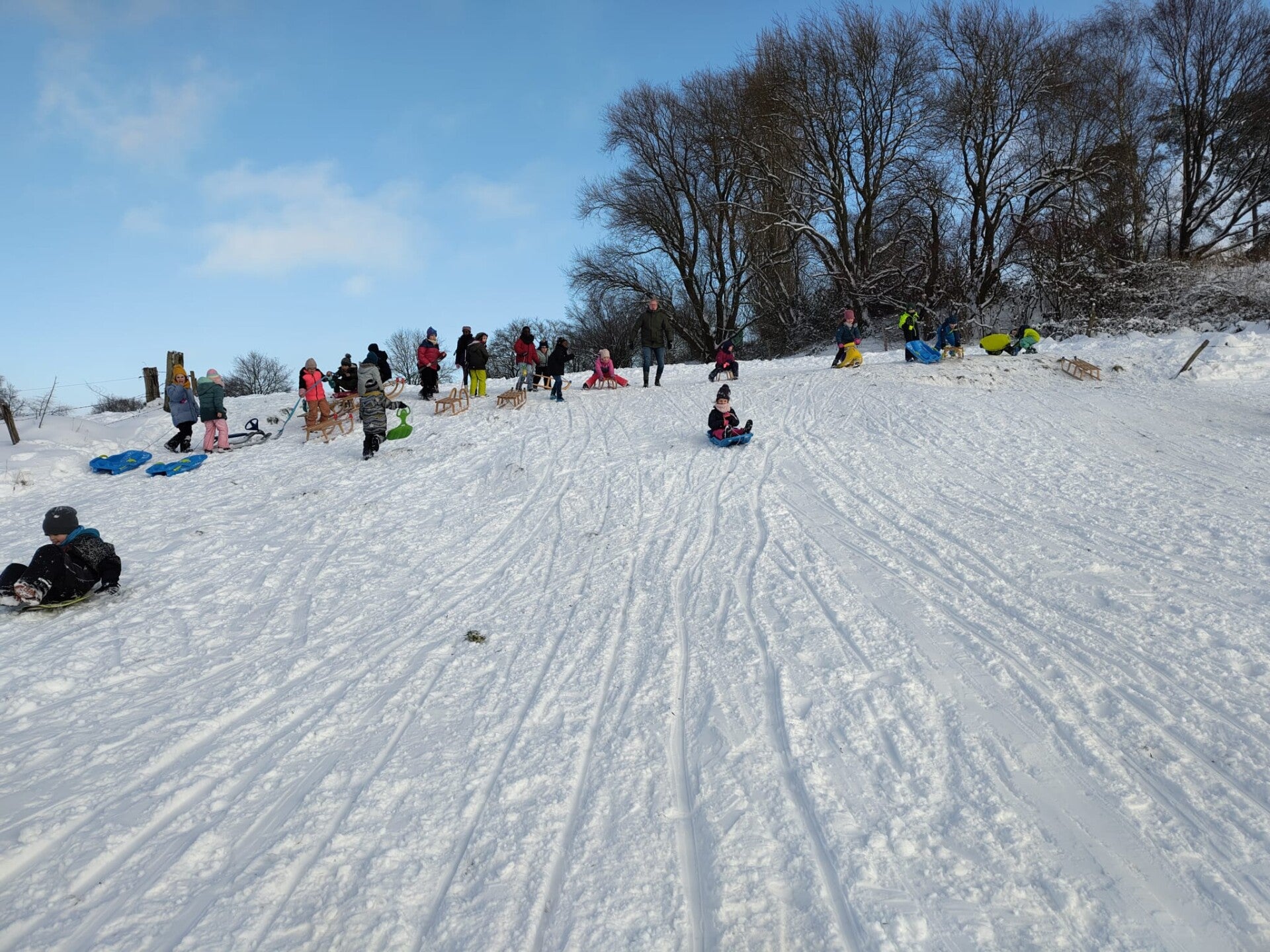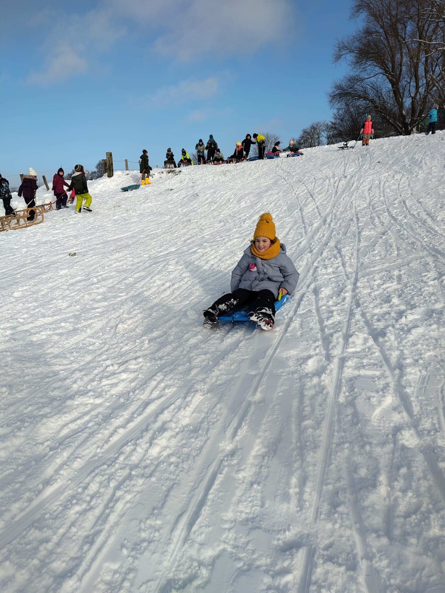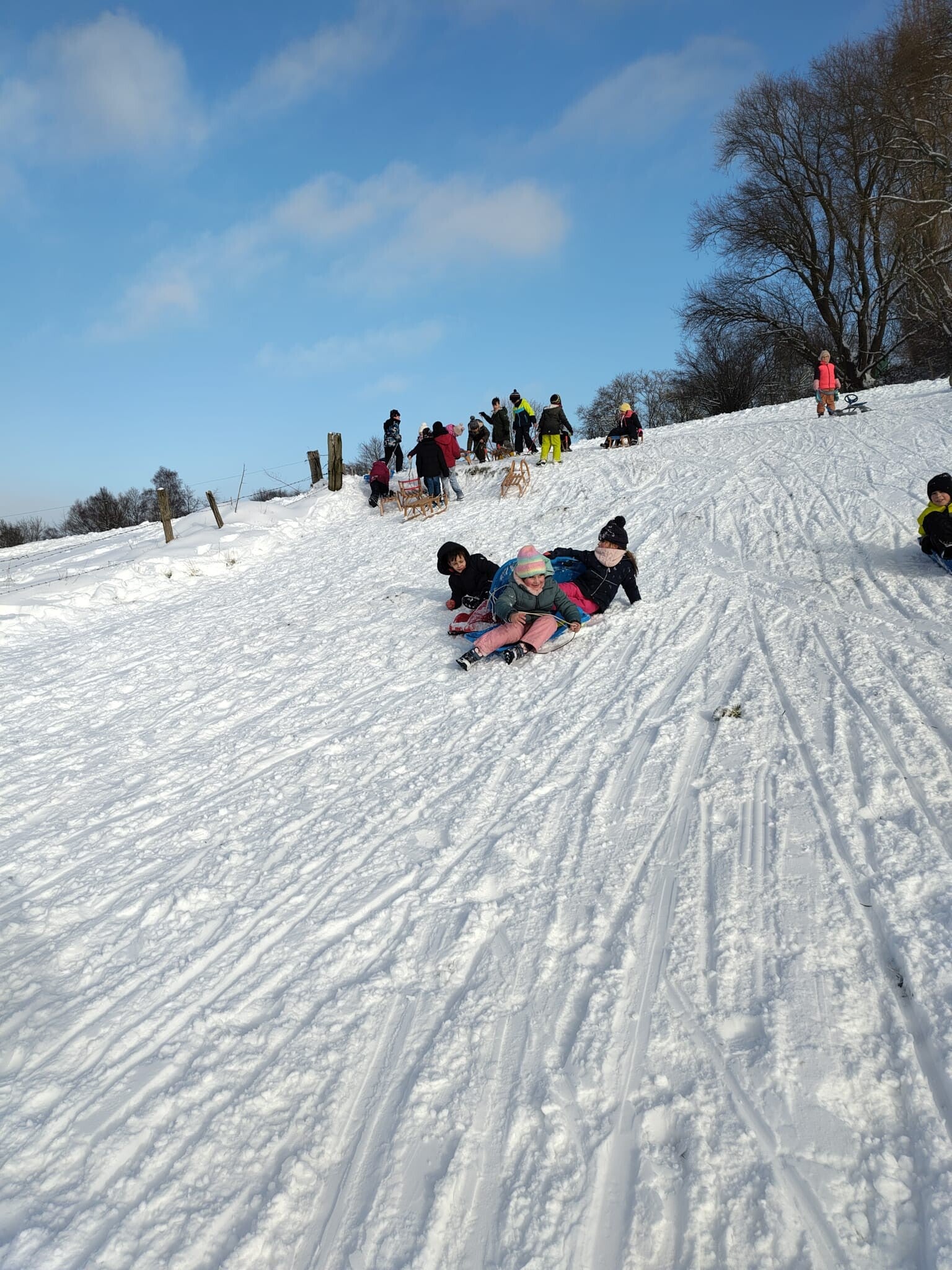 Am Freitagnachmittag haben wir den tollen Schnee genutzt und waren gemeinsam mit der 2. Klasse rodeln. Es hat uns allen großen Spaß gemacht!