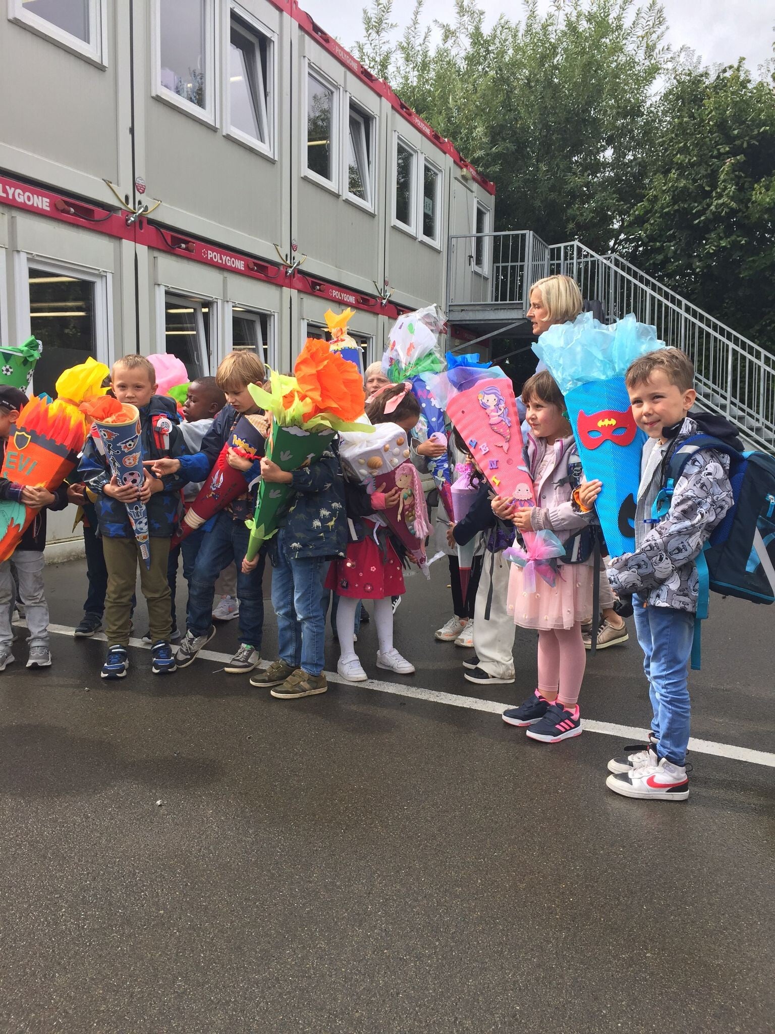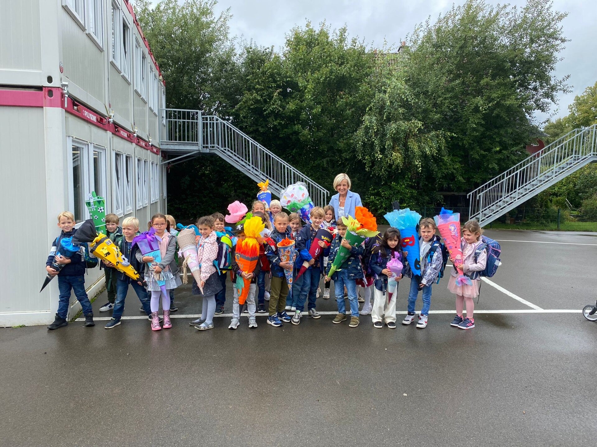 Wir sind nun alle Schulkinder! Unsere Lehrerinnen heißen Frau Kockartz und Frau Jerusalem. Am Ende des Tages durften wir eine wunderschöne Schultüte in Empfang nehmen. Darüber haben wir uns sehr gerfreut!