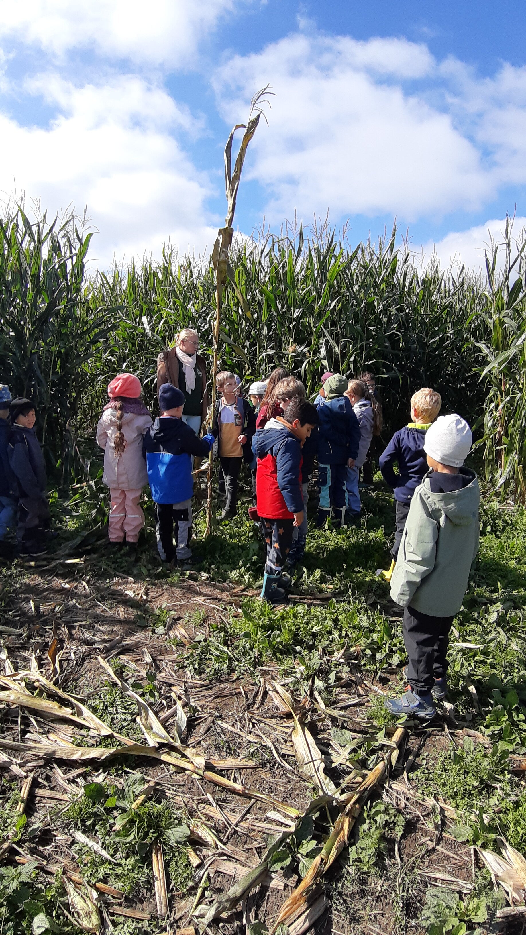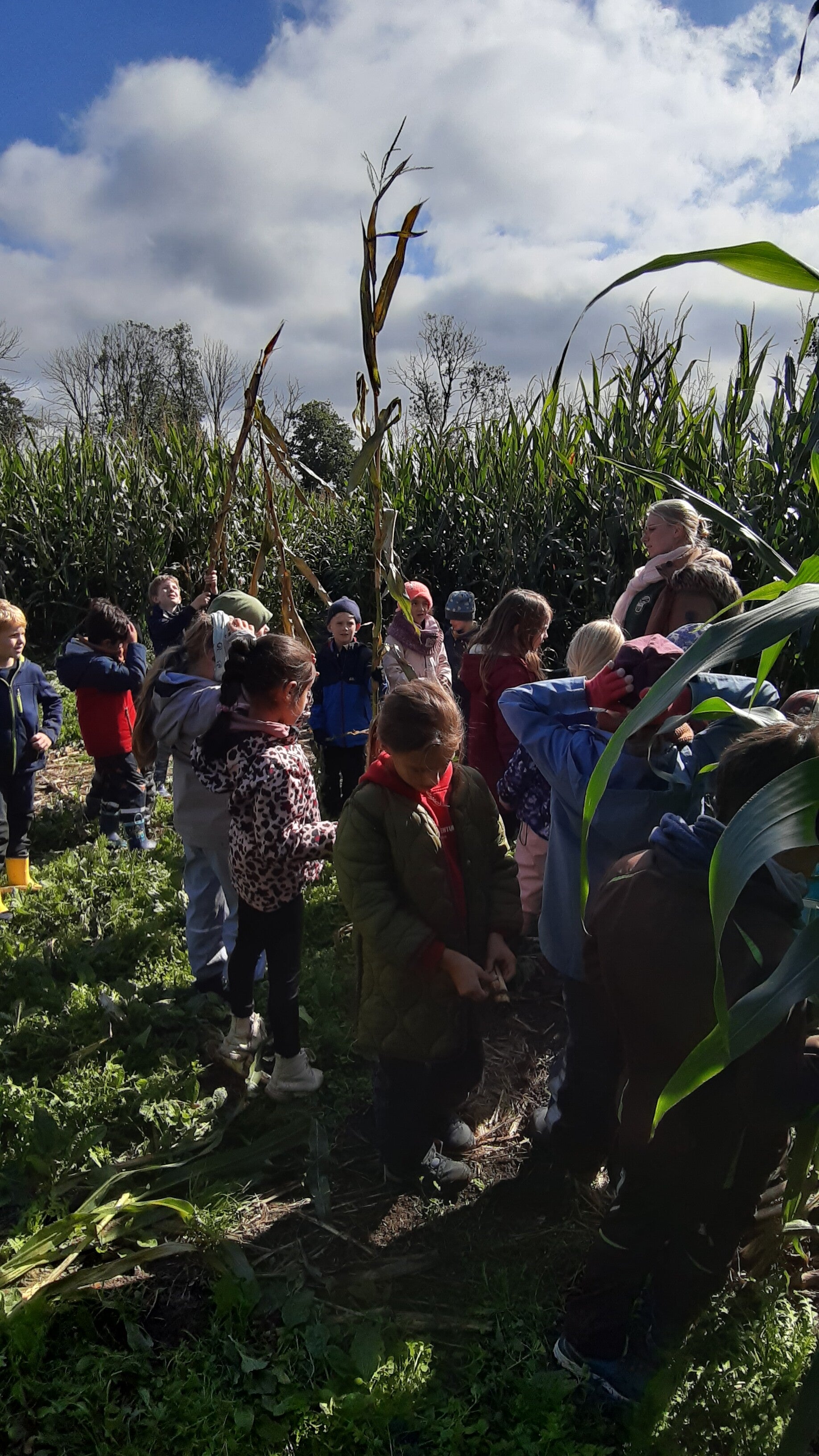 Zum Abschluss des Tages haben wir im Maisfeldlabyrinth gespielt und jeder durfte natürlich einen Maiskolben mit nach Hause nehmen. Ein rundum gelungener Schultag in der Natur!