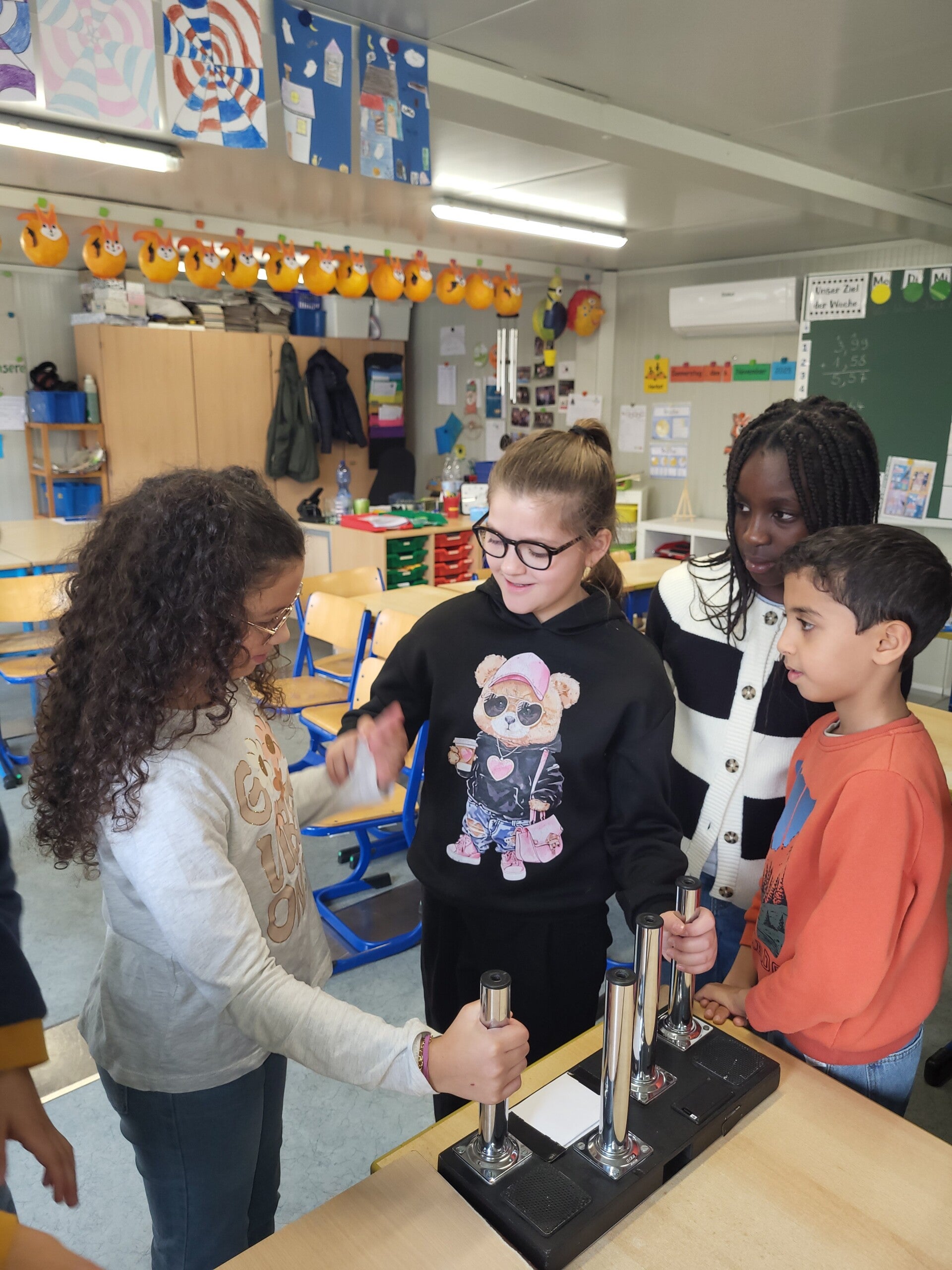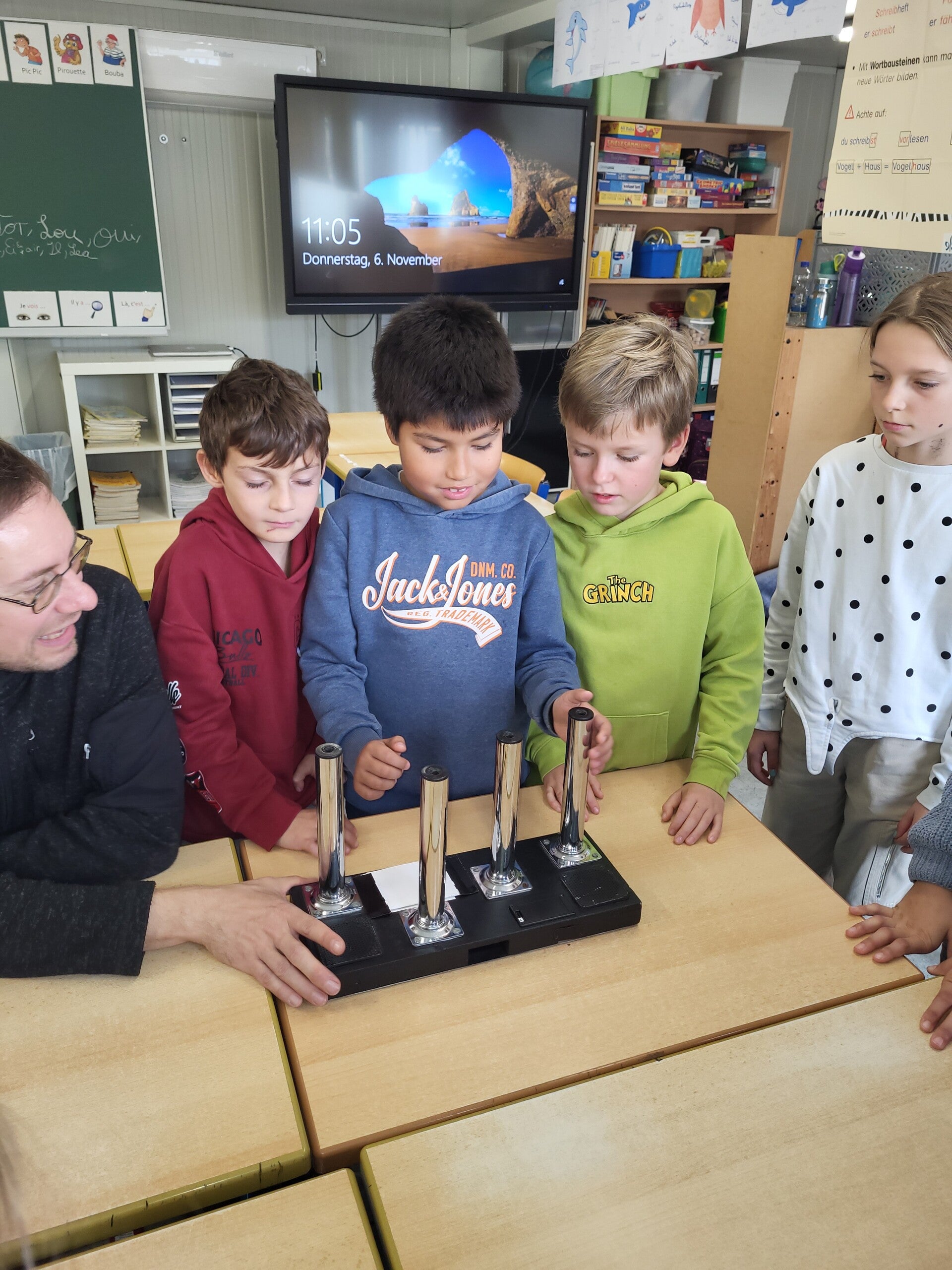 Am vergangenen Donnerstag besuchte uns Herr Stache. Er brachte uns verrückte, selbst gebaute, Musikinstrumente mit, die wir noch nie gesehen hatten. Einige waren aus alltäglichen Gegenständen, wie einem alten Telefon, gebaut, andere aus uns völlig unbekannten Klangmaschinen.
