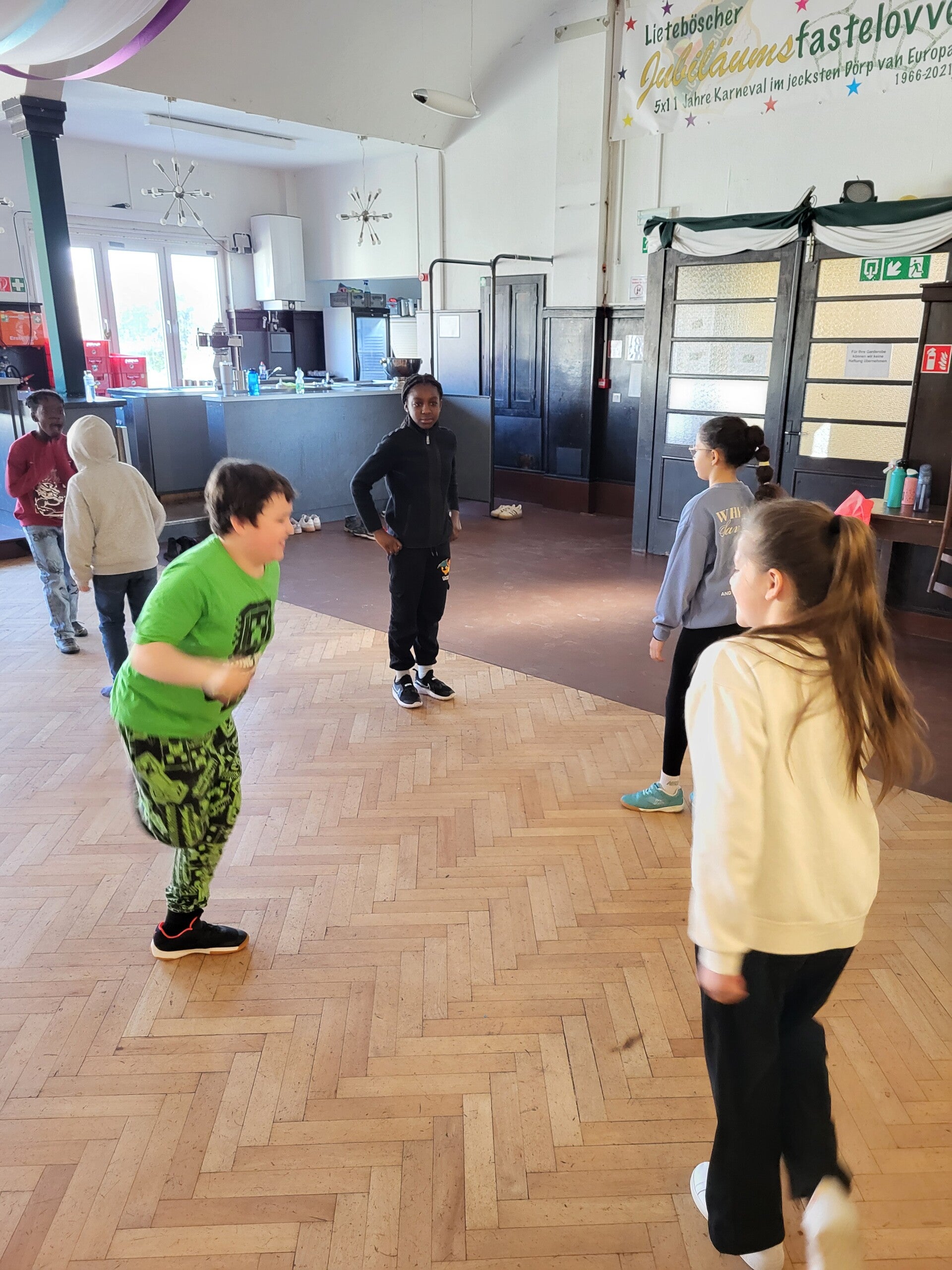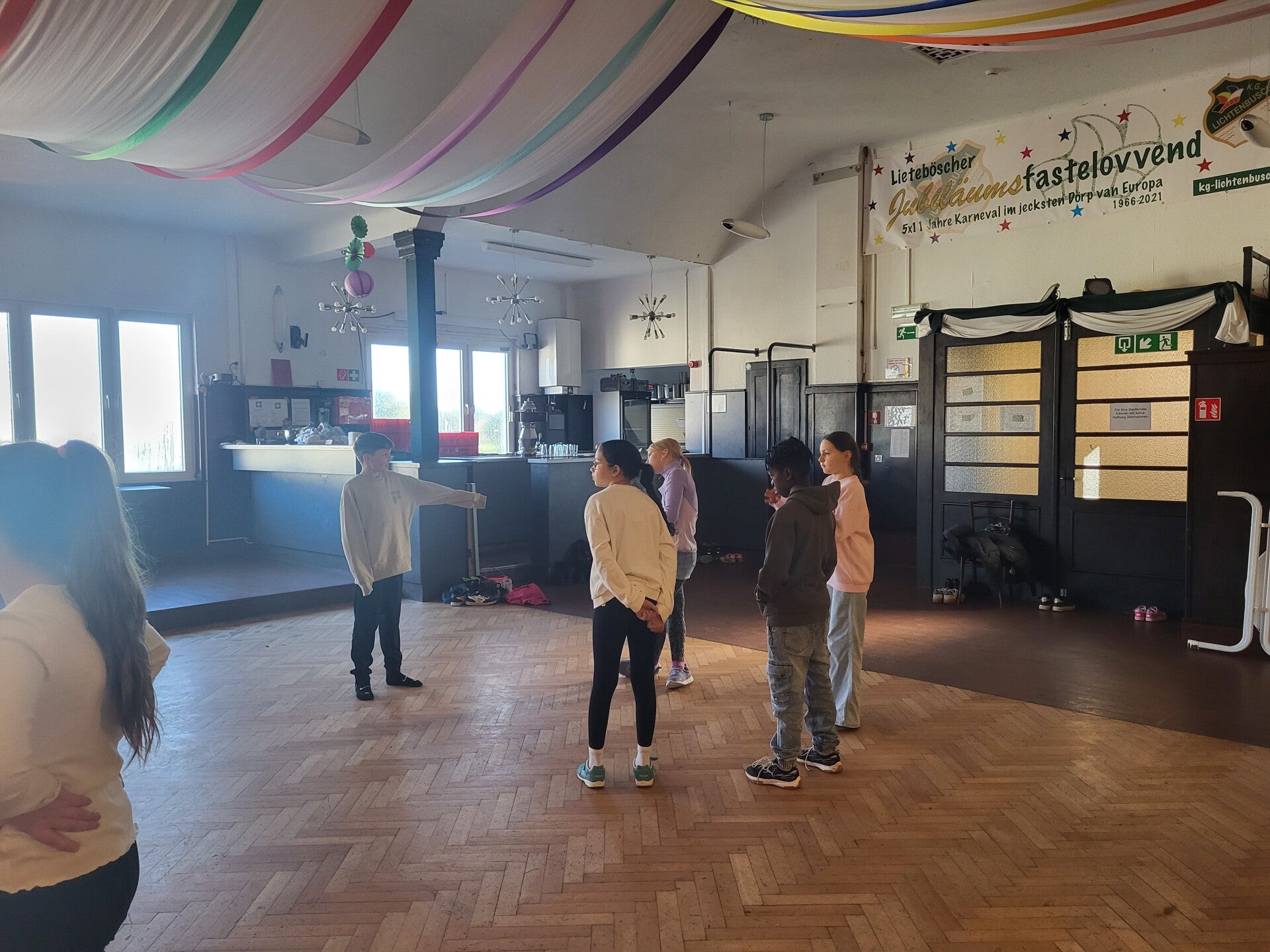 Im Januar und März besuchte uns Emily von der Tanzschule "Bewegung und Tanz". Einen Vormittag lang bewegten wir uns zu verschiedenen Melodien und Rhythmen, übten uns in Körpersprache und Ausdruck und studierten verschiedene Tänze ein. Dabei lernten wir auch den "Braindance" kennen. Diese Vormittage haben uns viel Freude bereitet.