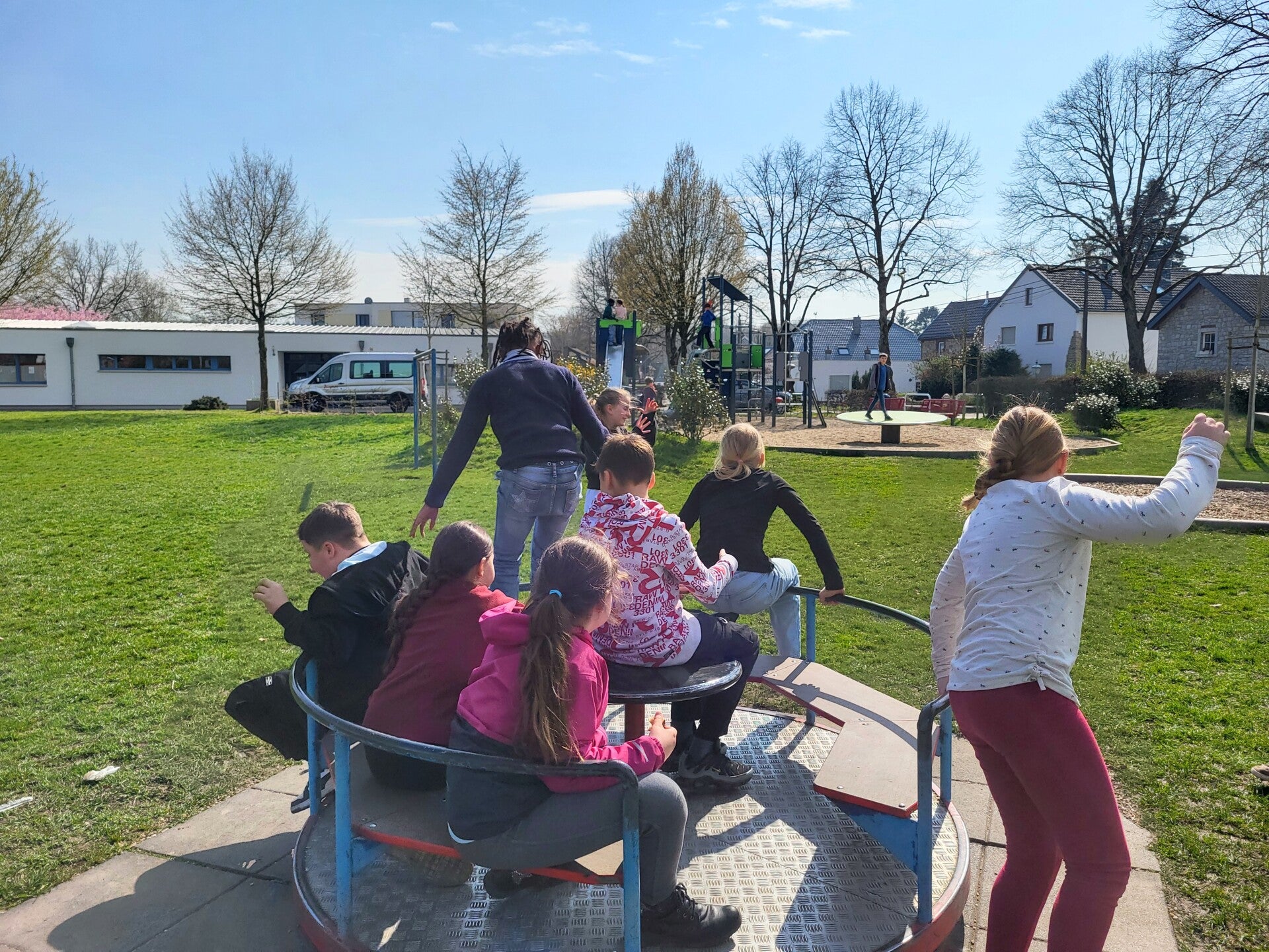 Wir haben unser Murmelglas eingetauscht und uns gewünscht, einen Nachmittag gemeinsam auf dem Spielplatz zu verbringen. Bei bestem Wetter haben wir die Sonne genossen und außerdem bei Kuchen und Keksen den Abschied von unserer Praktikantin gefeiert.