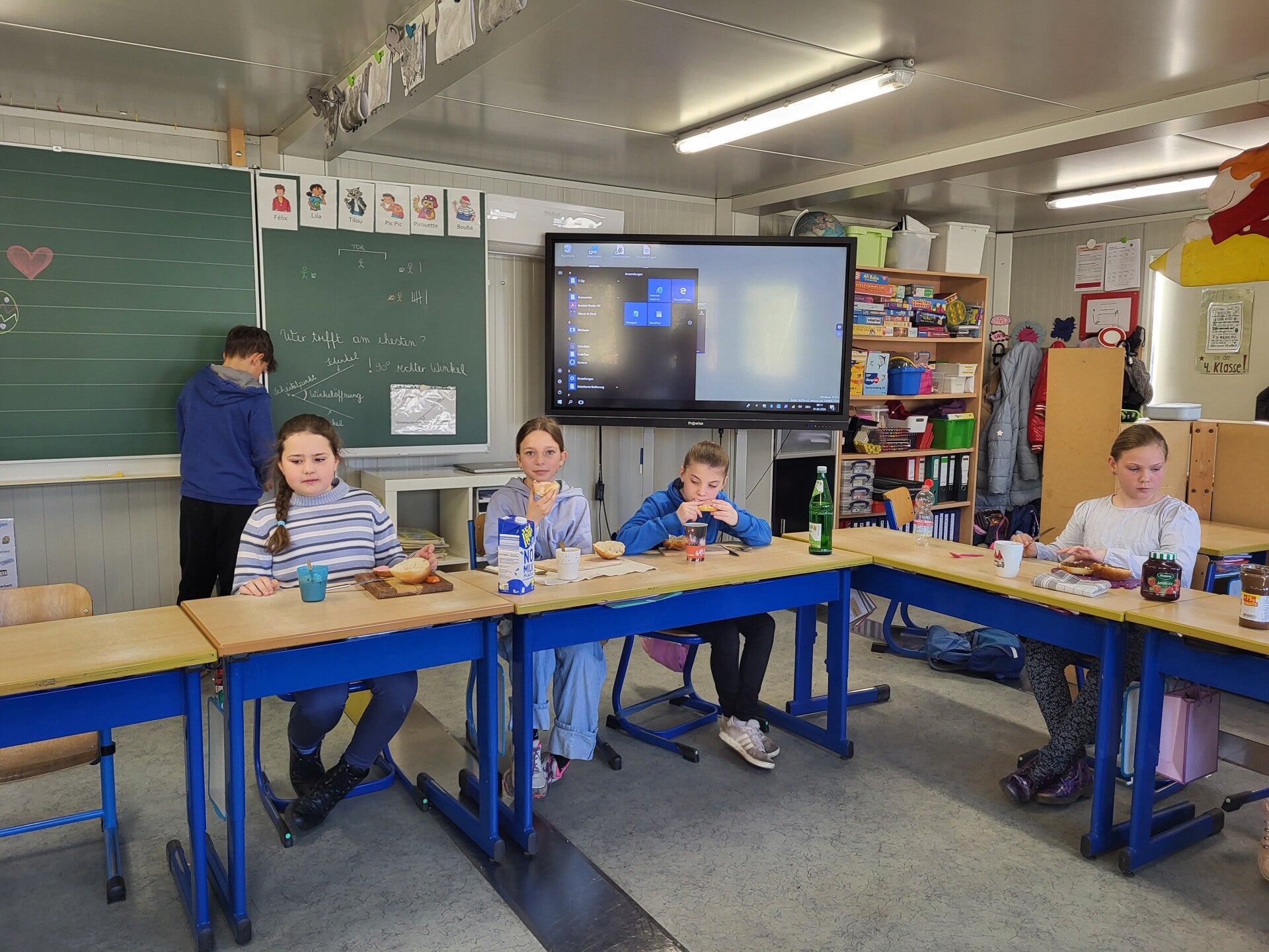 Heute, am 1. April, hatten wir einen ganz besonderen Tag. Wir starteten mit einem leckeren Osterfrühstück🐇🐣 in unserer Klasse, zu dem jeder etwas mitbrachte.