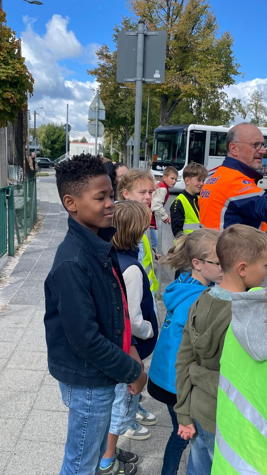 Am Montag kam ein Polizist in unsere Schule und hat die Kinder aus der fünften Klasse besucht. Er erklärte, dass wir nun Schülerlotsen werden dürfen. Das ist eine wichtige Aufgabe, denn Schülerlotsen helfen allen Kindern, nach der Schule sicher über die Straße zu gehen.